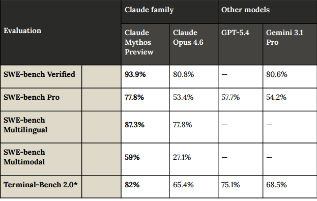 在软件工程上,Claude Mythos Preview远超Opus4.6——这些Anthropic此前已经泄露。