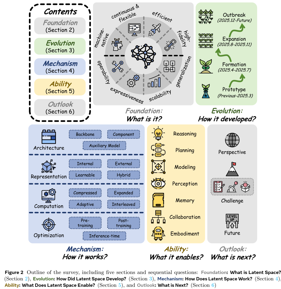 我们对潜空间如何从早期的潜推理演变为更广泛的多模态和系统级研究范式进行了统一综述。