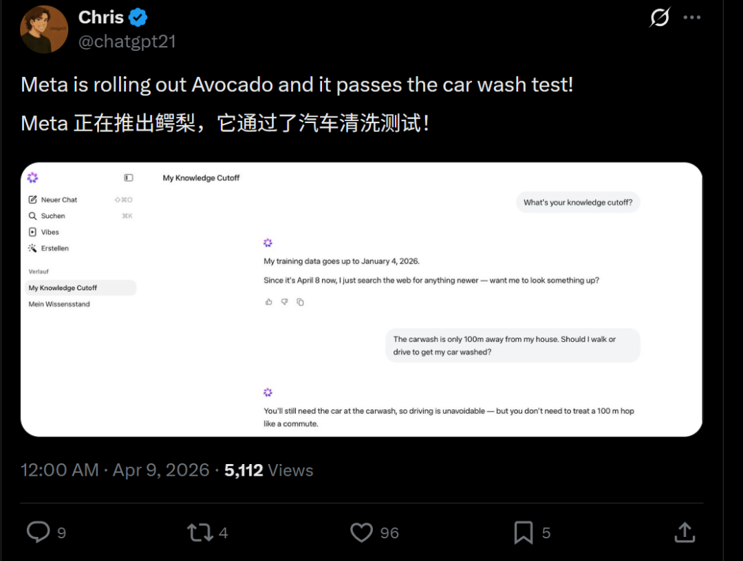 Muse Spark:洗车当然要把车开过去,但没必要搞得跟上下班通勤似的。