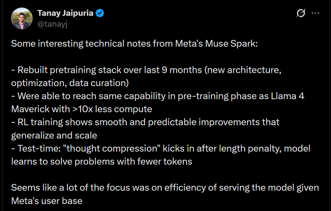 至于Muse Spark是如何做到这一点的,Meta也公布了背后的训练细节。