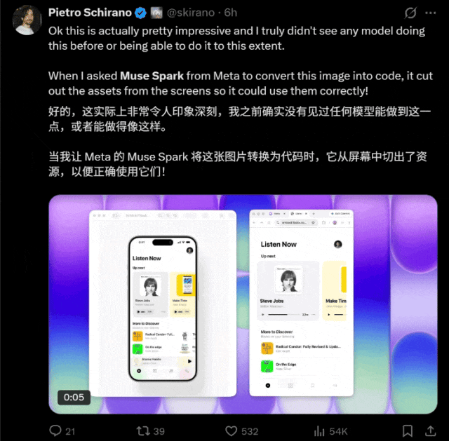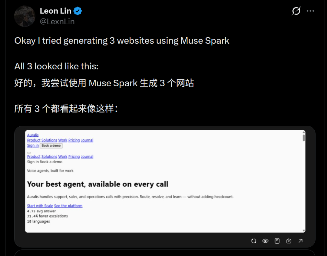 他们拿到Muse Spark的早期访问权测了一波,然后给出了一个结论:Meta回来了!