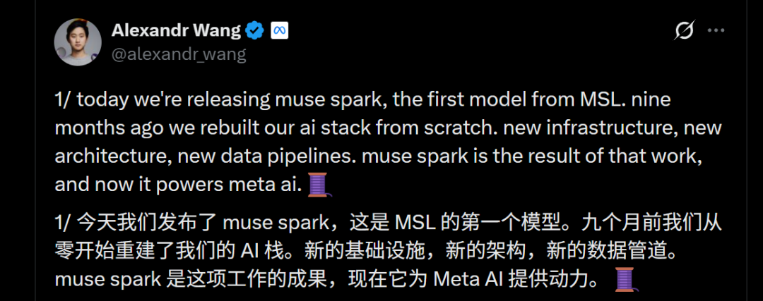 亚历山大王带队9个月从零重构Meta所有AI技术栈,在不断的质疑中交出超级智能实验室第一个模型: