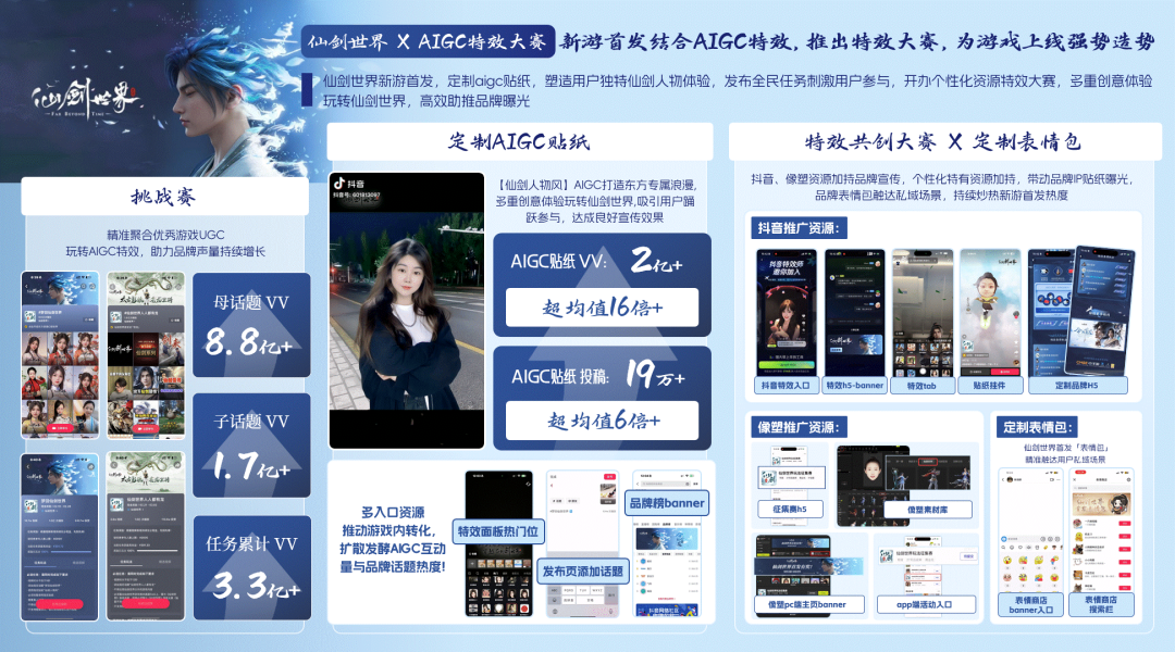 抖音平台数据显示,AI类特效投稿占比高达60%-70%,日均播放量超70亿,能带动UGC自然流量裂变超1W+,实现品牌声量的全域扩散。