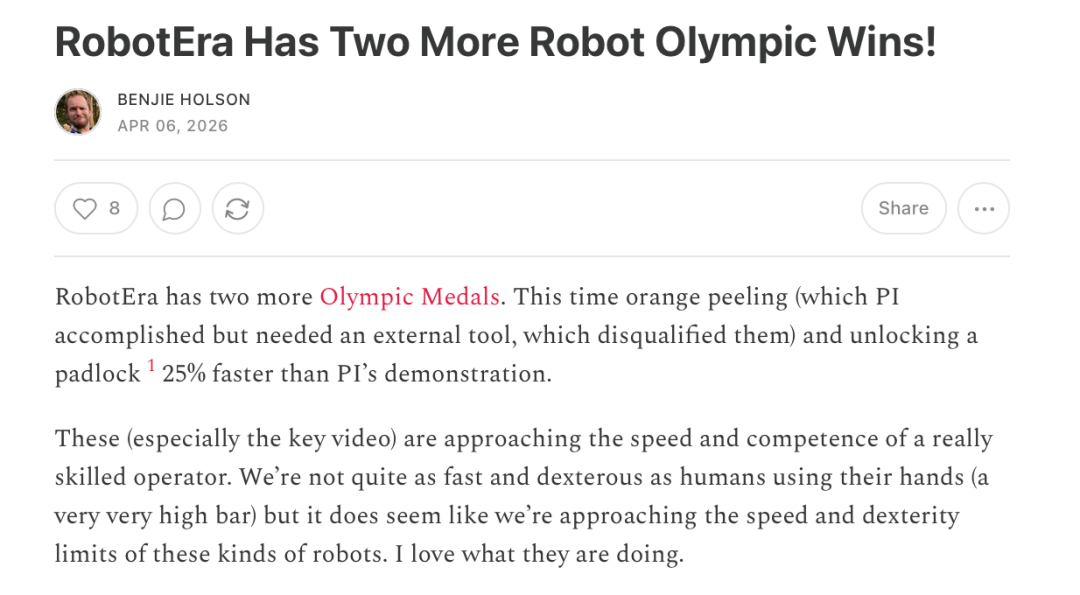 换句话说,只有真正具备泛化与触觉智能的系统,才能在比赛中存活。