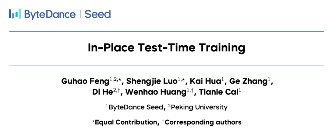 In-Place TTT的论文一作是冯古豪和罗胜杰。