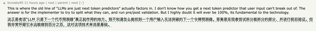 网友表示,这种行为像极了几十年前程序员试图用正则表达式来防止SQL注入一样,本质上只是在自欺欺人,全凭运气防守。