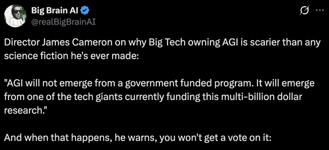 在他看来,真正令人担忧的,并不是机器觉醒后主动毁灭人类,而是AGI在诞生之初,就牢牢掌握在少数科技巨头手中。