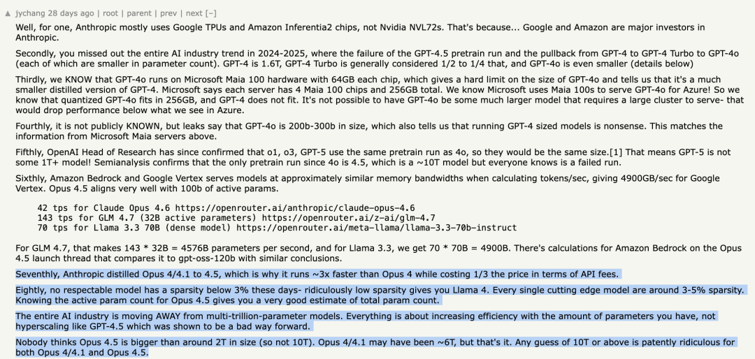 Hacker News有网友认为,其可能是Anthropic尝试超大参数规模的实验性产品,后续4.5版本反而缩小了参数规模以优化效率。