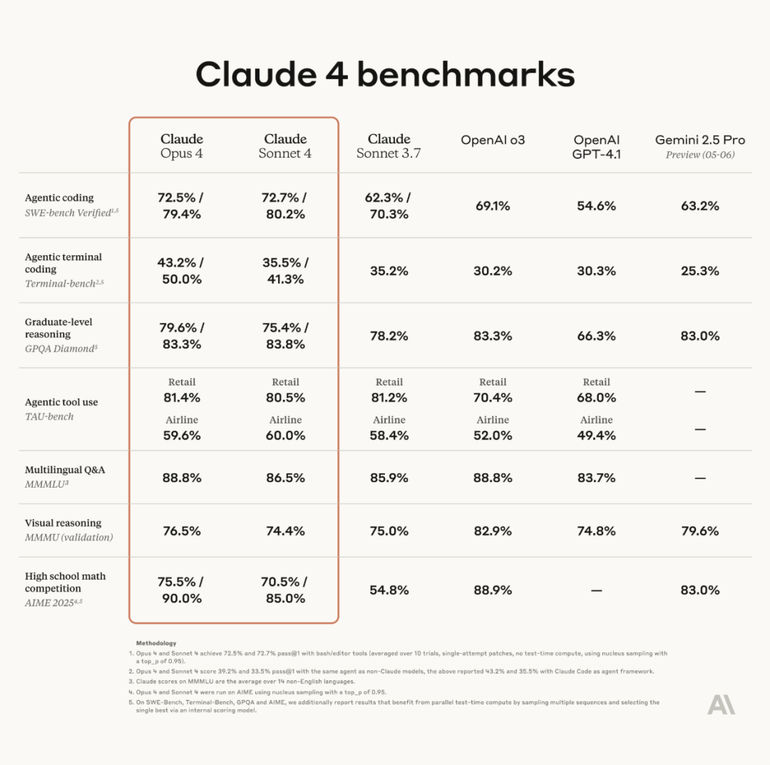 之后,Anthropic跳过了3.5命名,未发布3.5 Opus,在Claude Sonnet 3.7后直接进入4系列,发布了两个模型: