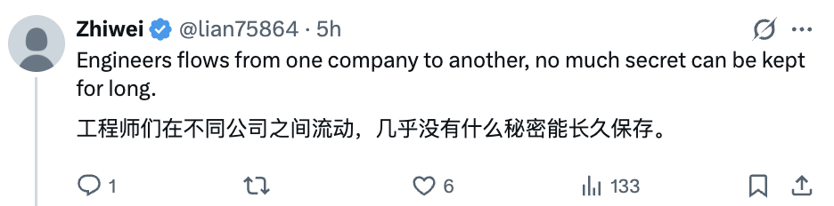对此老马闭麦了,网友提出的点倒不无道理,“顶尖人才在这么几家公司间流动,似乎也没什么秘密能藏太久”。