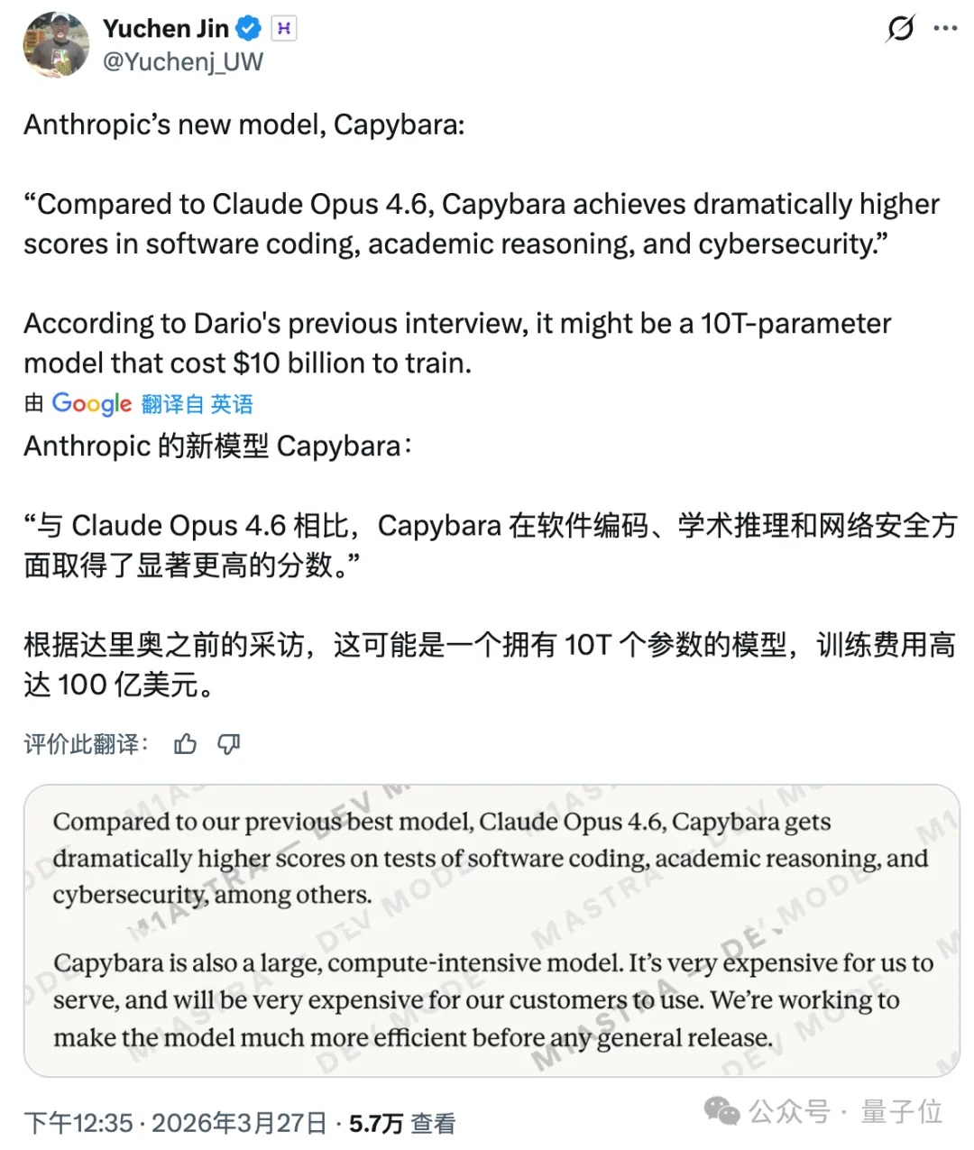 除了已发布模型的模型外,前几天Anthropic团队因权限配置失误,把自家未发布模型泄露了。