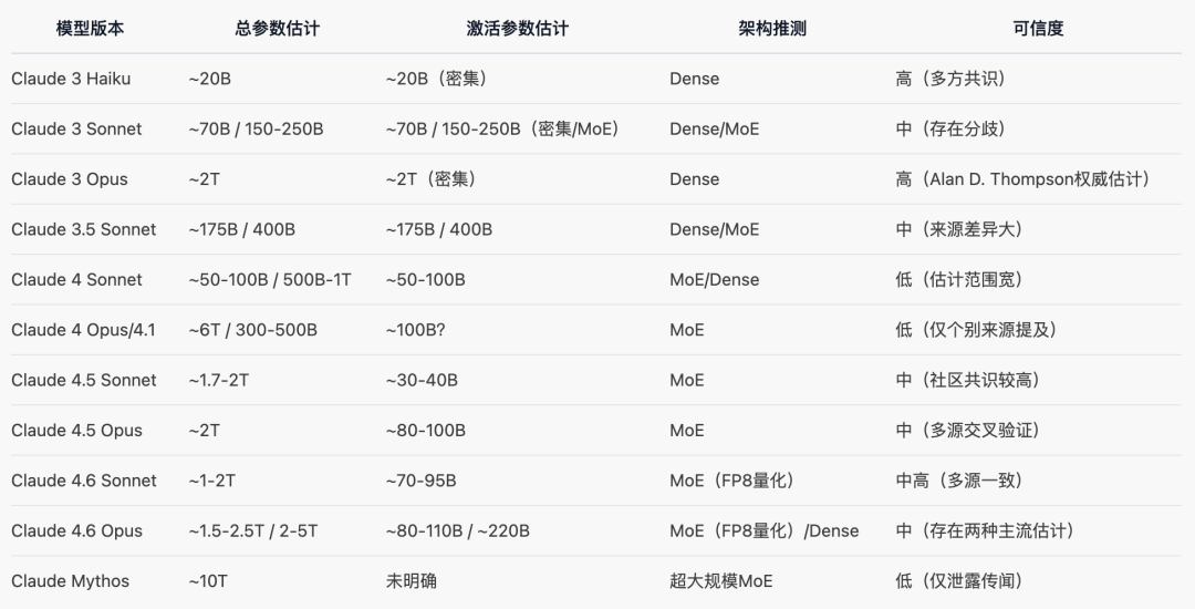 我们用AI总结了一下网友们分析讨论的不同版本的Claude参数规模。