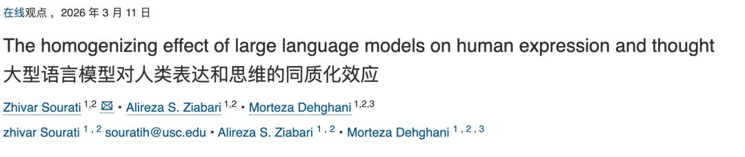 一篇来自南加州大学的论文指出,如果这种同质化趋势继续不受控制地发展下去,就有可能削弱人类的集体智慧和适应能力。