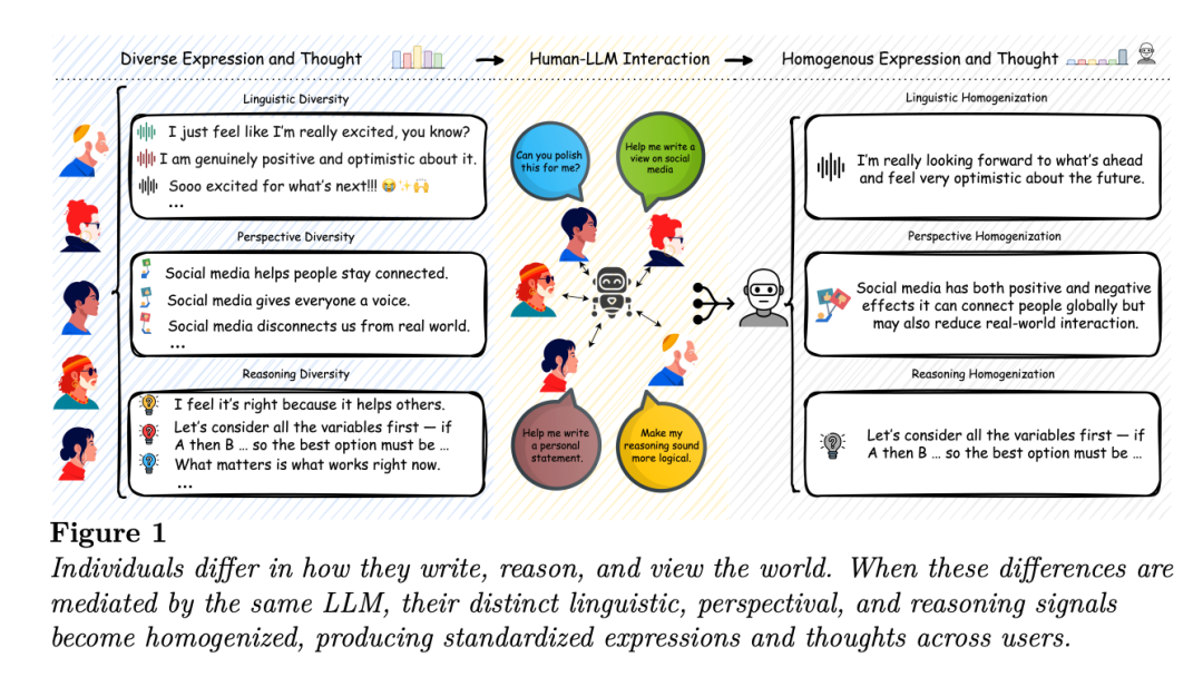 更重要的是,AI也会影响人们使用语言的方式,让人们的表达趋于同质化,这会掩盖真实的表达个性。