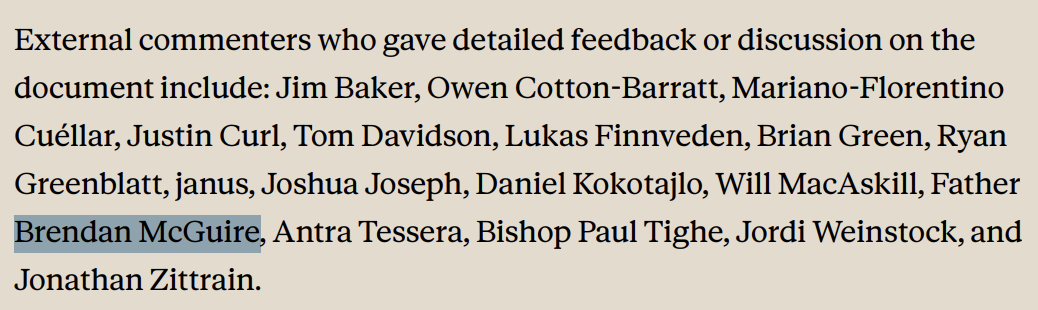 Anthropic直接把神父和梵蒂冈主教Paul Tighe拉进15位外部审阅者名单。