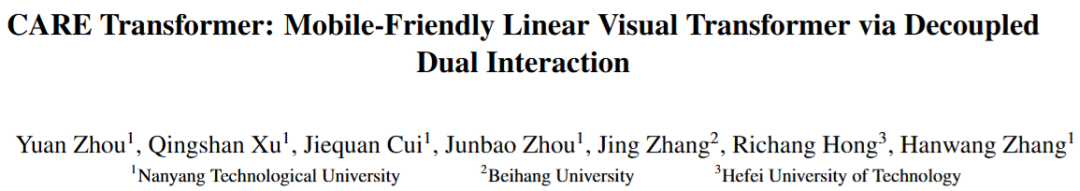 为从根本上破解上述行业难题,南洋理工大学联合北京航空航天大学、合肥工业大学的研究团队展开深度技术攻关,跳出传统堆叠式线性注意力的优化思维框架,首次将局部归纳偏置与长距离依赖建模解耦为并行的分治式任务,提出了全新的移动端友好型线性视觉Transformer架构CARE Transformer。