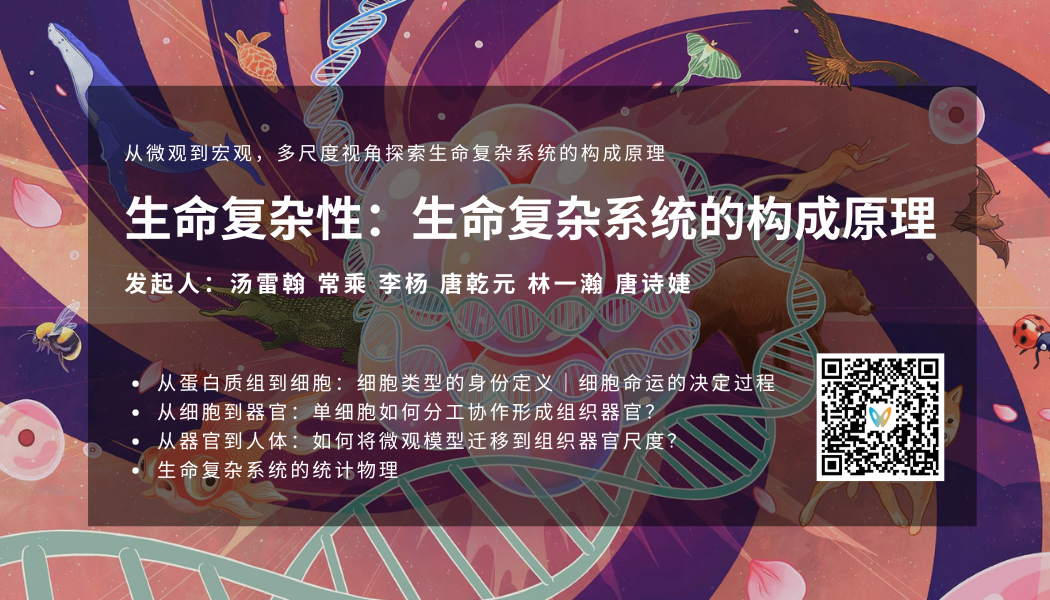 集智俱乐部联合西湖大学理学院及交叉科学中心讲席教授汤雷翰,国家蛋白质科学中心(北京)副研究员常乘、李杨,香港浸会大学助理教授唐乾元,北京大学前沿交叉学科研究院研究员林一瀚,中国科学院分子细胞科学卓越创新中心博士后唐诗婕,共同发起「生命复杂性:生命复杂系统的构成原理」读书会,从微观细胞尺度、介观组织器官尺度到宏观人体尺度,梳理生命科学领域中的重要问题及重要数据,由生物学家提问,希望促进统计物理、机器学习方法研究者和生命科学研究者之间的深度交流,建立跨学科合作关系,激发新的研究思路和合作项目。读书会目前共进行10期,现在报名参与读书会可以加入读书会社群,观看视频回放,解锁完整读书会权限。