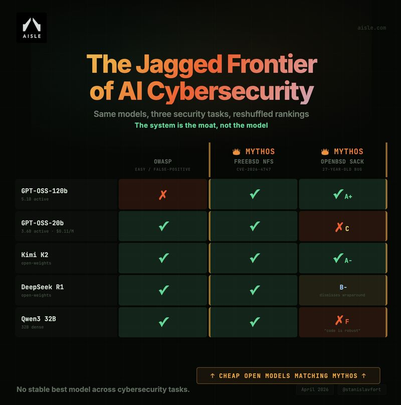 来自AISLE实验的研究员,同样对Mythos的「战果」进行复测,结果发现: