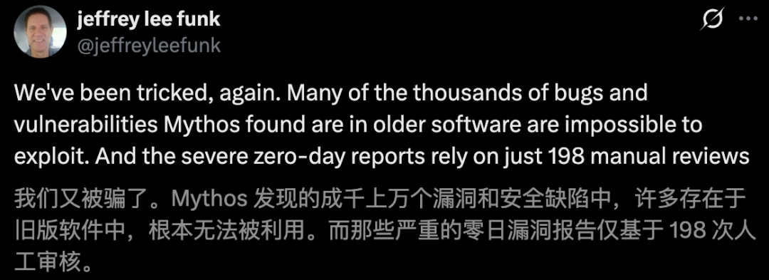 Mythos发现的成千上万个漏洞中,其中绝大多数,都存在于根本无法被利用的「老旧软件」中。