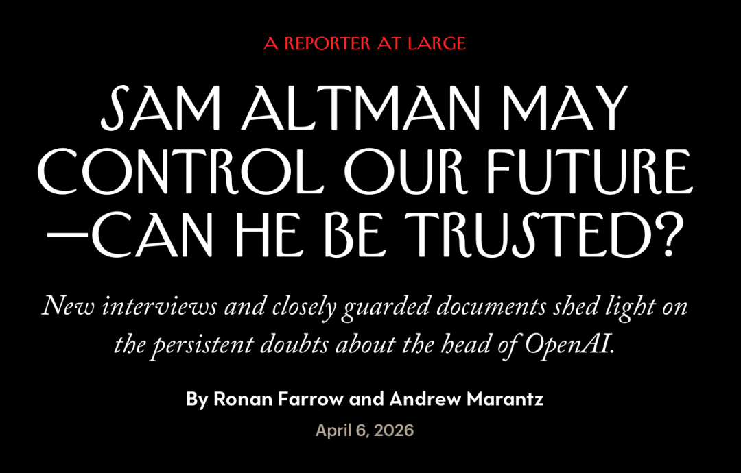 顺着这个问题往下找,几乎绕不开几天前 The New Yorker 发出的那篇长文,《Sam Altman May Control Our Future—Can He Be Trusted?》(山姆·奥特曼可能掌控着我们的未来——他值得信任吗?)。
