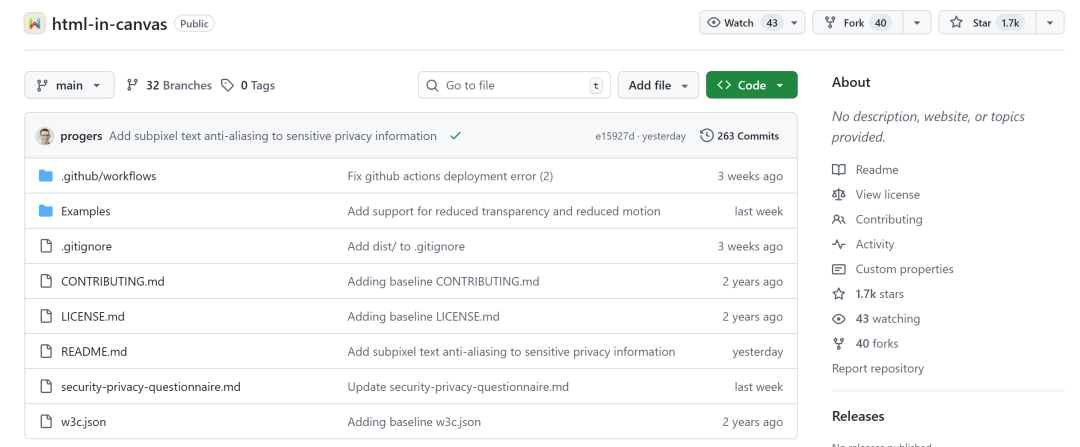 以及值得一提的是,虽然HTML-in-Canvas目前只是一项实验功能,但它已经以提案的形式进入W3C(万维网联盟)/WICG(Web平台孵化器社区组)体系——