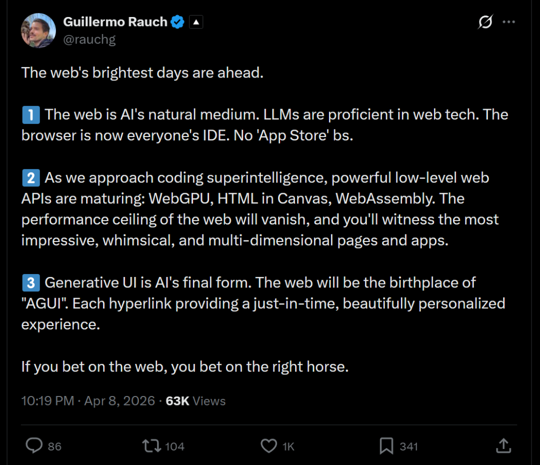 无怪乎Vercel CEO感叹,网络最辉煌的日子还在前方。