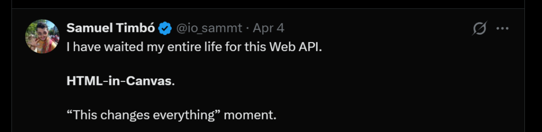 我很少说某件事是“改变游戏规则的”,但HTML-in-Canvas可能就是。这是一个“让Flash回归”的时刻。