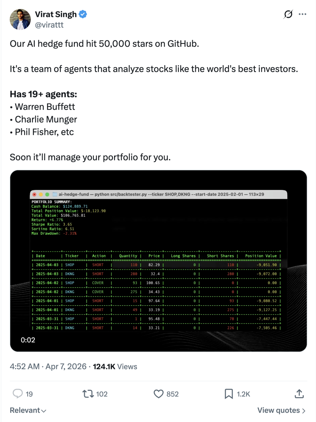 而像AI Hedge Fund这样整合各大家投资方法论的开源项目也越来越多,投资大师Agent化正在成为一个小趋势。