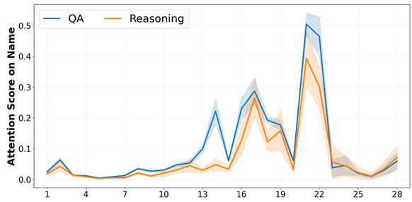 图3:模型逐层对关键实体的注意力分数变化