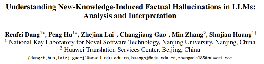 【该工作由南京大学自然语言处理研究组、华为翻译服务中心合作完成,论文地址:https://arxiv.org/abs/2511.02626,项目代码:https://github.com/NJUNLP/New-Knowledge-Induced-Factual-Hallucinations】