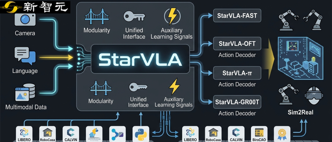 【新智元导读】当前具身智能的VLA(Vision-Language-Action)赛道正陷入典型的「碎片化」泥潭:不同团队采用异构的动作解码范式、强耦合的数据管线、互不兼容的评测协议,导致方法难以横向对比,复现成本极高。开源项目 StarVLA 没有选择堆砌算力或盲目刷榜,而是从系统抽象层面直击痛点,提出了一套Backbone-Action Head的「乐高式」统一架构。