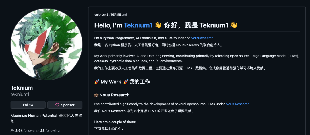 在x上最活跃的Hermes贡献者Teknium,是Nous Research的联合创始人兼后训练负责人,此前曾在StabilityAI任职。