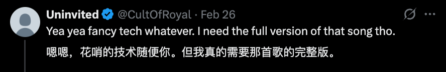 对了,除了Hermes本身,Hermes自己写的一首歌也小小火了一把。