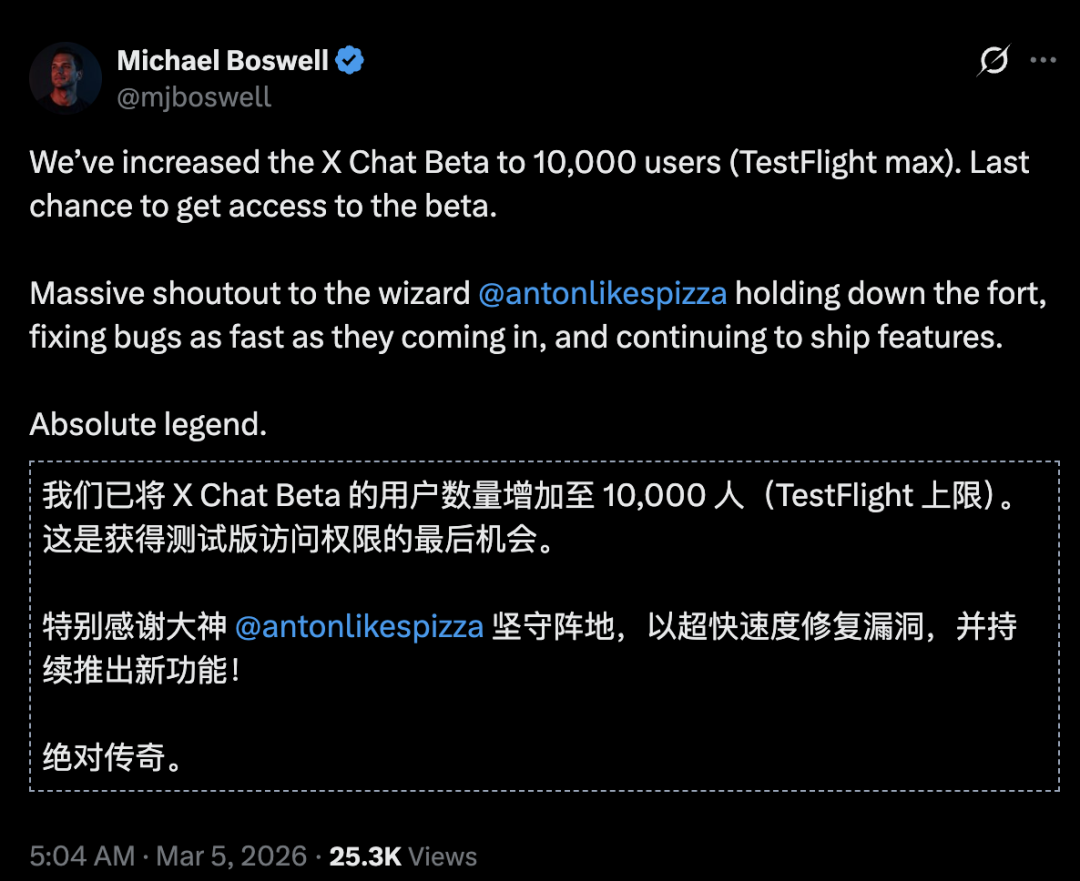 这款被看作「马斯克版微信」的独立社交应用官宣,将于4月17日正式上线。