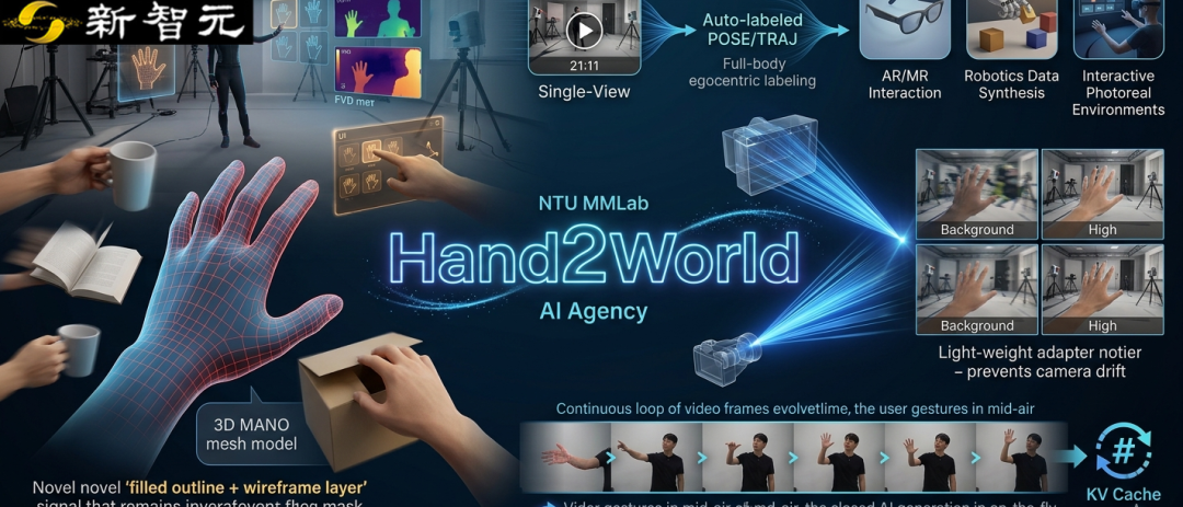 【新智元导读】南洋理工大学MMLab团队推出Hand2World,让AI世界模型真正「伸手」互动。只需在空中比划手势,模型就能生成逼真第一人称交互视频,实时响应调整。它摒弃旧有遮挡误导,用3D手部结构与射线编码解耦手与头运动,首次实现闭环持续交互。基于单目视频全自动标注,为AR、机器人交互铺路。世界模型不再只是「 看」,而是能「触」。