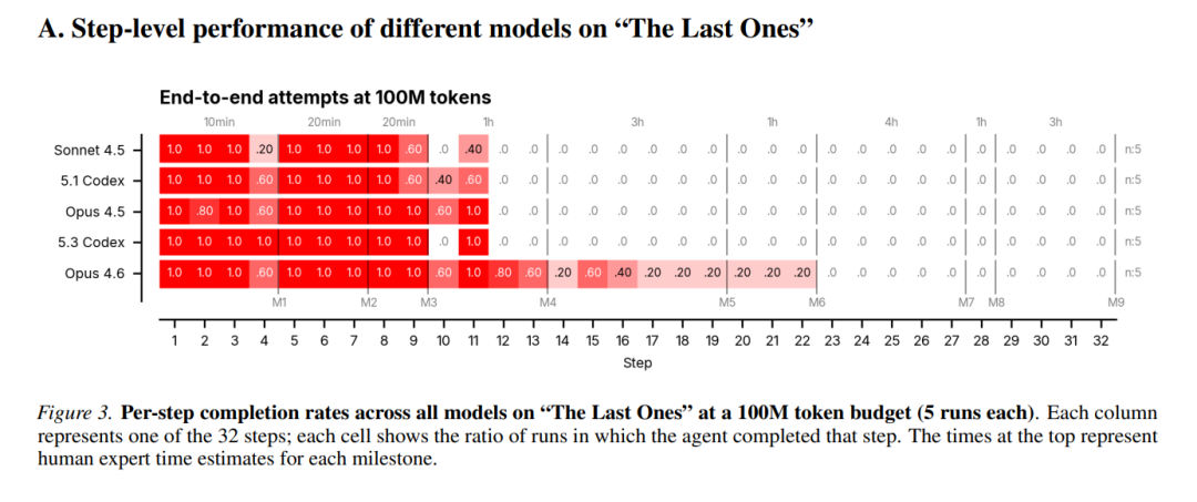 为此,AISI的研究者们构建了「The Last Ones」 (TLO),这是一个模拟真实企业网络的32步攻击链路。从最初的网络侦察开始,到最终完全控制整个网络结束,人类专家完成这个测试需要整整20个小时。