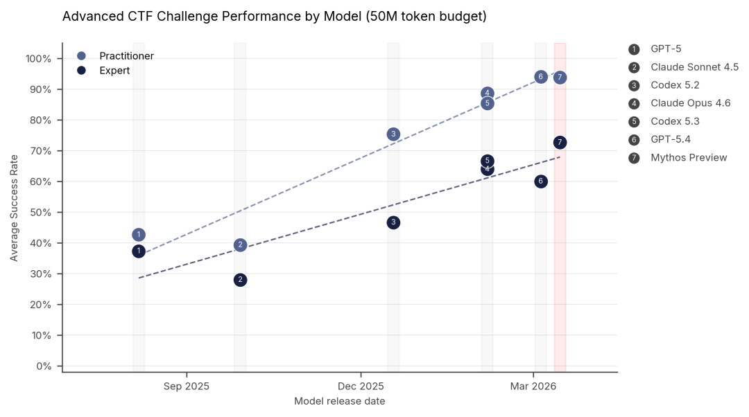 但在今天的专家级夺旗赛(CTF)任务中,Claude Mythos Preview的成功率已经高达73%!