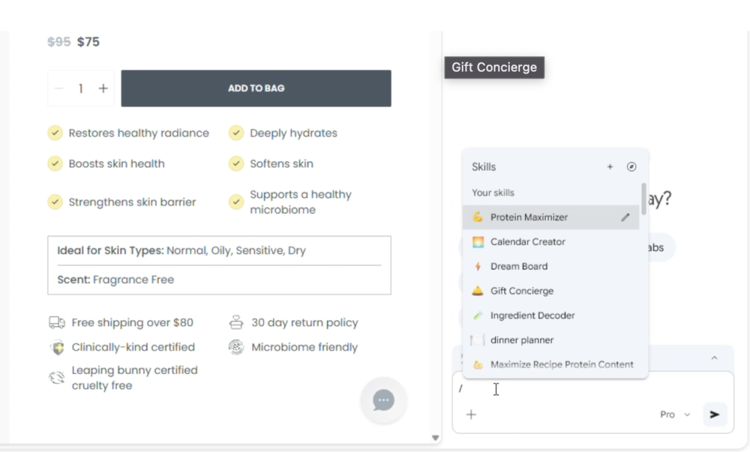 Google还预置了一个技能库,50多个现成的技能,涵盖食谱营养计算、护肤品成分分析、YouTube视频总结等场景。觉得不顺手可以自己改,改完存下来下次接着用。