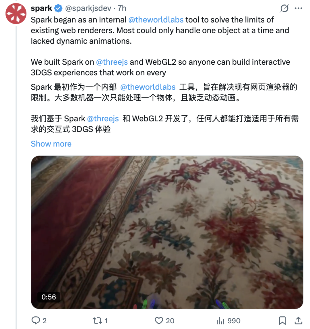 Spark前身是World Labs开发的一款内部3D高斯溅射渲染引擎。
