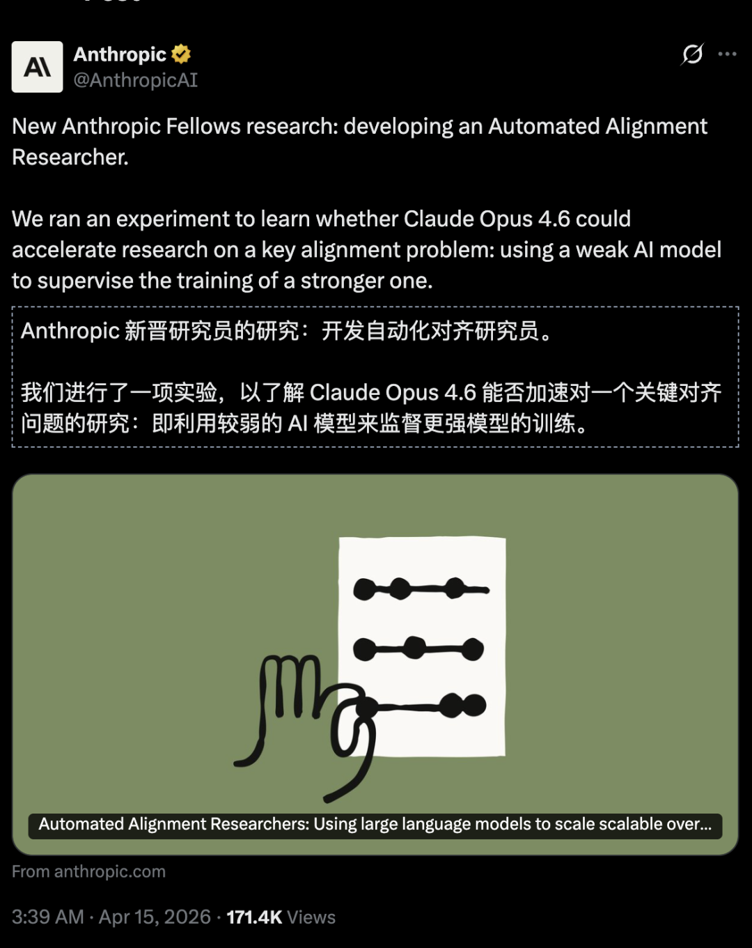标题叫「自动化对齐研究员」(Automated Alignment Researchers),学术味十足,措辞克制。