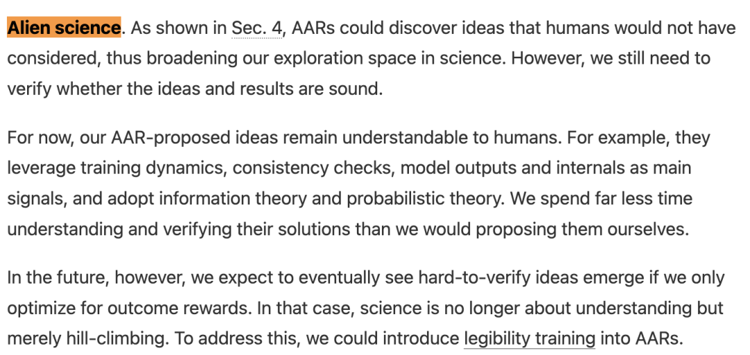 但研究团队发出了一个严肃的警告:随着模型能力的进一步提升,AI产出的科研成果可能会越来越难以被人类理解和验证。