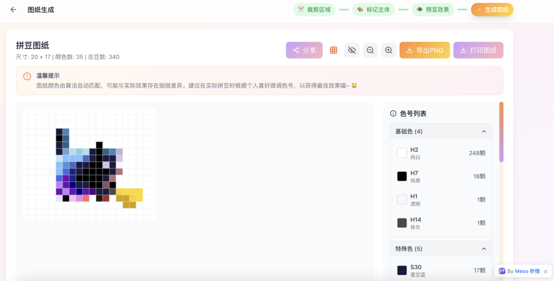 我在创意社区看到一个拼豆图纸生成器就挺有意思,get!