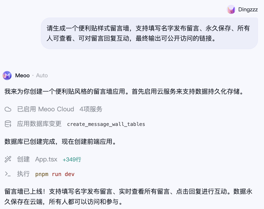 结果Meoo这波直接把开发压缩成了说话,把部署压缩成了点击。