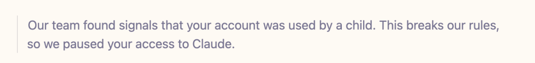 Anthropic发给他的邮件写得很直白:检测到你的账户被儿童使用,违反了我们的规,封了。