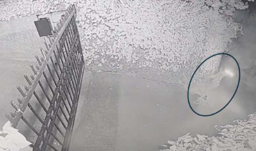 突然间,他猛地向住宅大门投出了自制燃烧瓶,火焰迅速在门口燃起。
