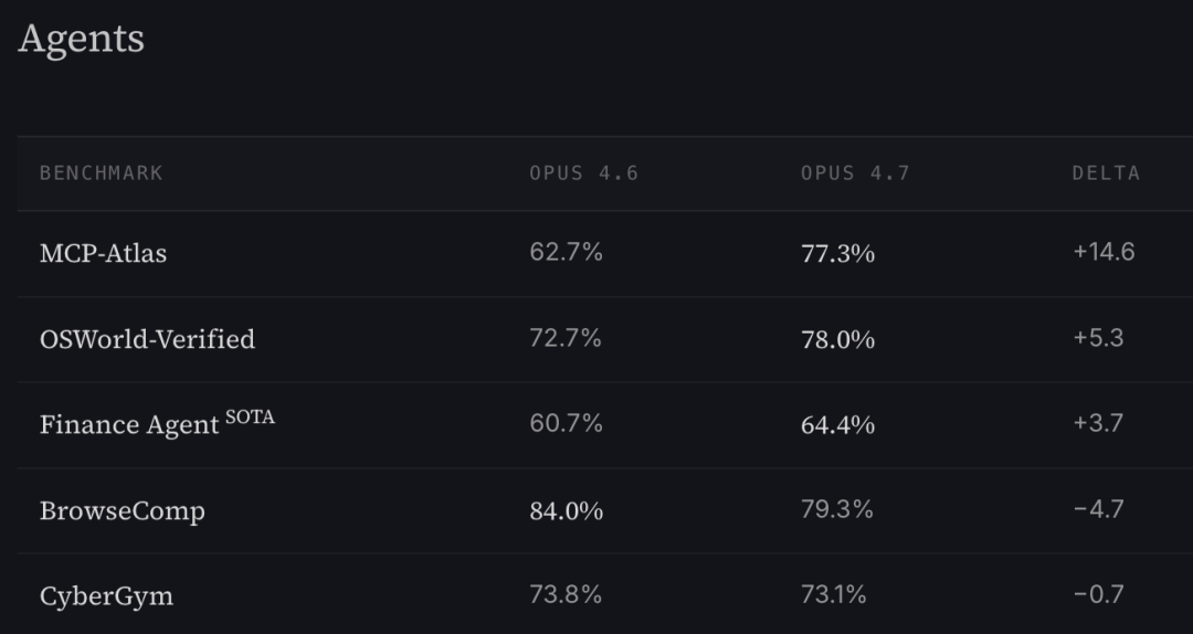 第三方基准LLM-stats也证实了BrowseComp基准上Claude Opus 4.7成绩下降,而CyberGym分数下降被Anthropic解释为「有意的调整」。