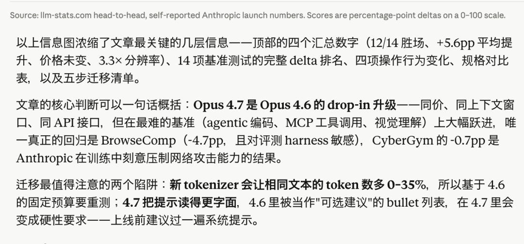 我们用Opus 4.6和4.7分别总结一下最新英文测评文章要点: