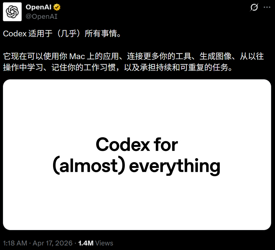 【新智元导读】你的电脑长出了第二个光标了!OpenAI重磅更新Codex,AI能在后台自己开模拟器、修Bug,完全不耽误你前台工作。一代「赛博牛马」正式觉醒。