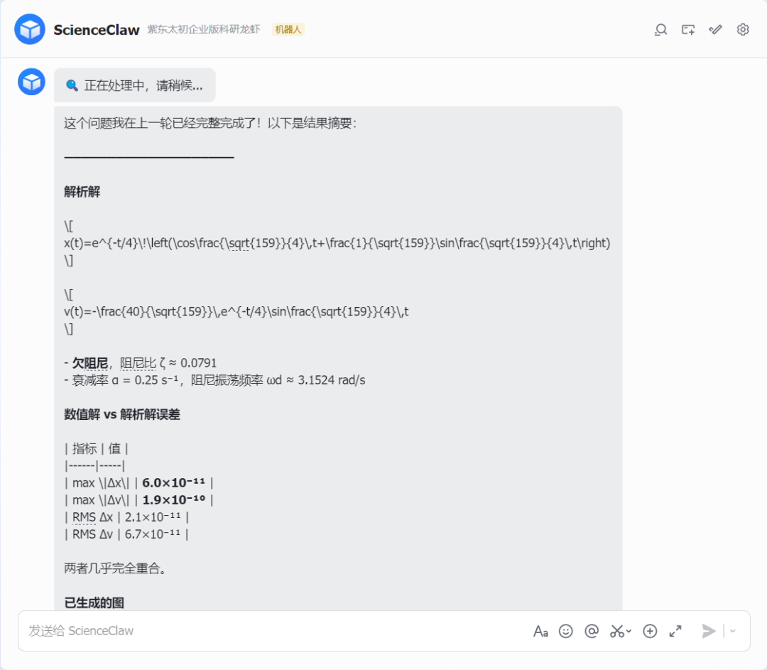 而且不同于OpenClaw的难部署,紫东太初ScienceClaw直接开箱即用。(指路官网:https://scienceclaw.zidongtaichu.com/)