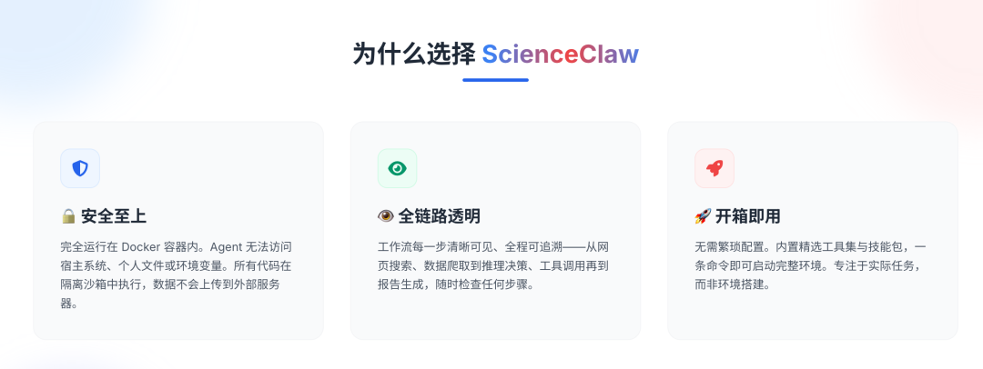 率先发布的是ScienceClaw个人版,其目标用户是独立的科研工作者,主打私密、轻量化和单人高效科研。